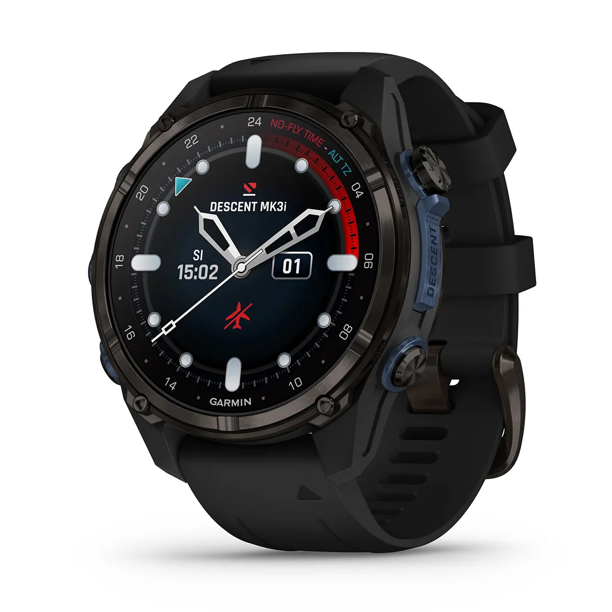 Discover a deeper connection with the Descent Mk3i watch-style dive computer. It features multiple dive modes plus SubWave sonar technology for diver-to-diver communication via preset messages (available with software v.15.70 or later). The device also supports monitoring of tank pressures and depth for up to eight networked divers, when paired with the Descent T2 transceiver (sold separately). Purpose-built specifically for divers, the Descent Mk3i dive computer combines a bright 1.2" AMOLED display with scratch-resistant sapphire lens, 200-meter dive-rated case and metal leakproof inductive buttons. DiveView maps offer bathymetric depth contours and more than 4,000 dive sites to help you find where to dive and get oriented. Plus, a dive readiness tool, developed by Garmin, shows how lifestyle factors such as sleep, exercise, stress and jet lag can affect your body's overall preparedness for diving - so, ultimately, you can make better-informed dive plan decisions (data presented is intended to be a close estimation of metrics tracked).