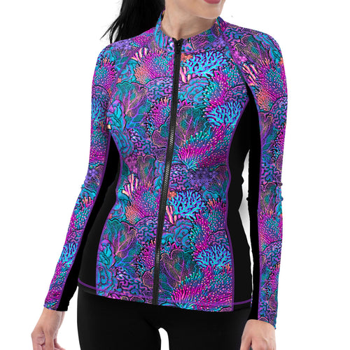SpaceFish Army Eco-friendly Full Zip Up Coral Kaleidoscope Rash Guard