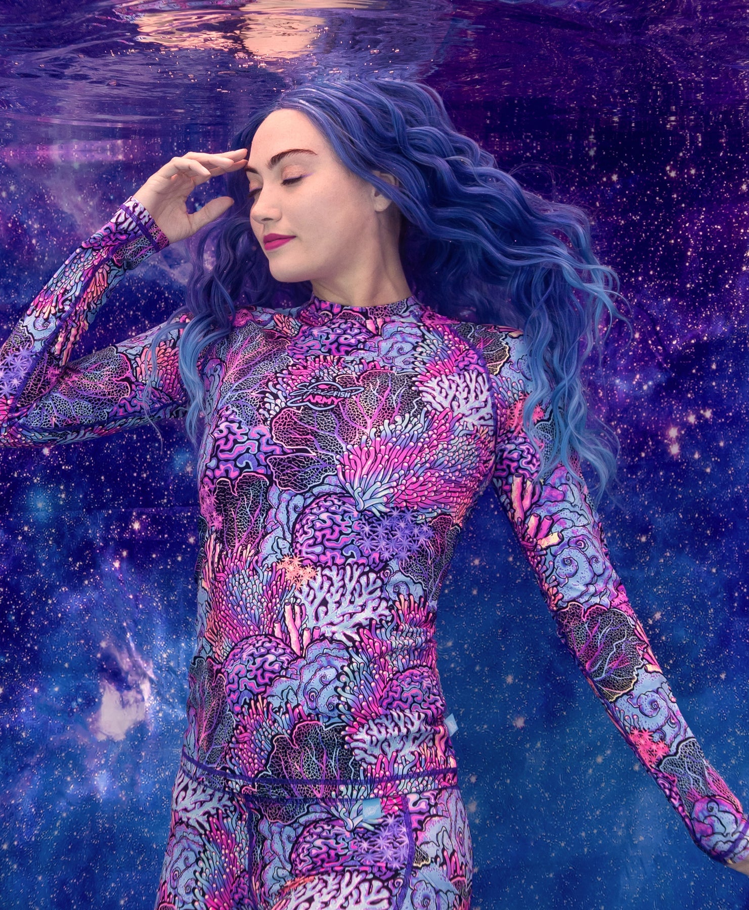 • Load image into Gallery viewer, SpaceFish Army Eco-friendlyCoral Kaleidoscope Contour Rash Guard